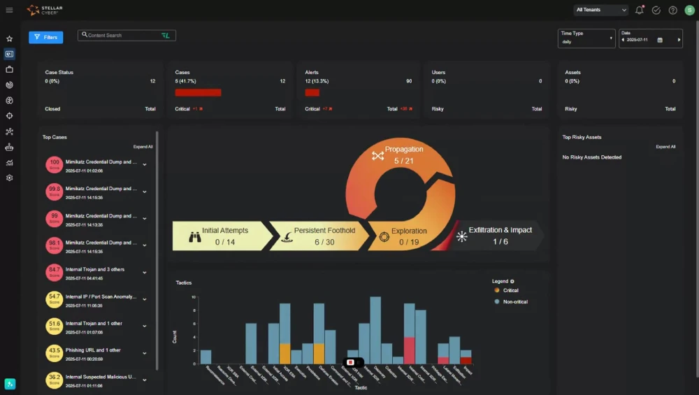Stellar Cyber unifies logs, packets, and endpoint data into a MITRE-aligned dashboard for complete attack visibility. Instantly see the entire attack lifecycle — from initial attempts to final impact —